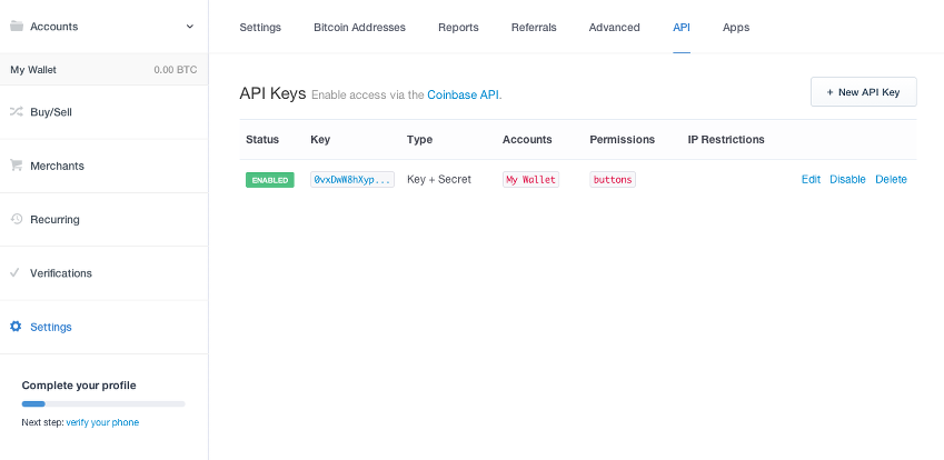 Then generate a new API key of type: HMAC (Secret+KEY) -- this is the default. In PERMISSIONS make sure you ONLY select BUTTONS. We do NOT want to give more permissions to this api key.