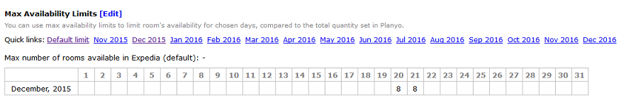 Let's say that you additionally want to increase the maximum availability for the room for dates between 20th and 31st December to 15. Simply click the link for December