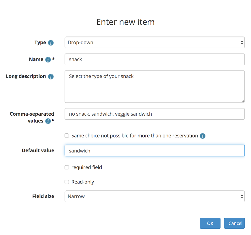 Note that you can click the button 'Reorder' to change where the dropdown is shown on the reservation form