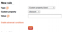 Now that the discounts are set for each user, you’ll need to add a Pricing Manager rule which applies the discount based on this customer user property. You do this by adding a rule of type