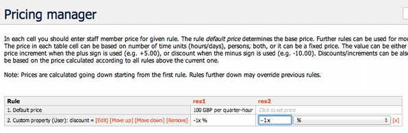 -1x will be interpreted as -1*10 (unit is percent), so a 10% discount to the price calculated in the previous rules. For the customers with no discount entered, this rule will be ignored (the result of the calculation will be -0%).